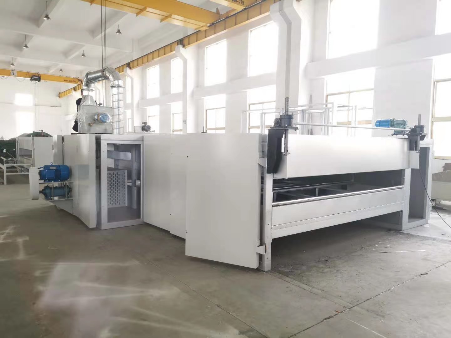 1)機(jī)器功能:對鋪好的棉進(jìn)行高溫烘烤處理,讓棉進(jìn)行粘合固定。