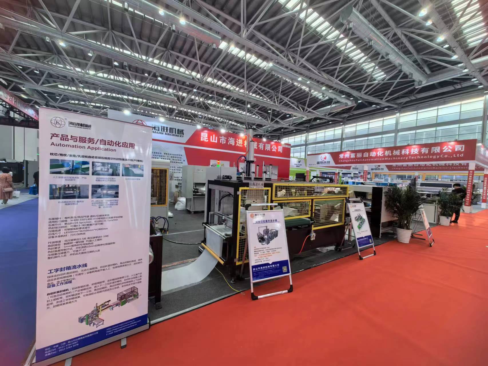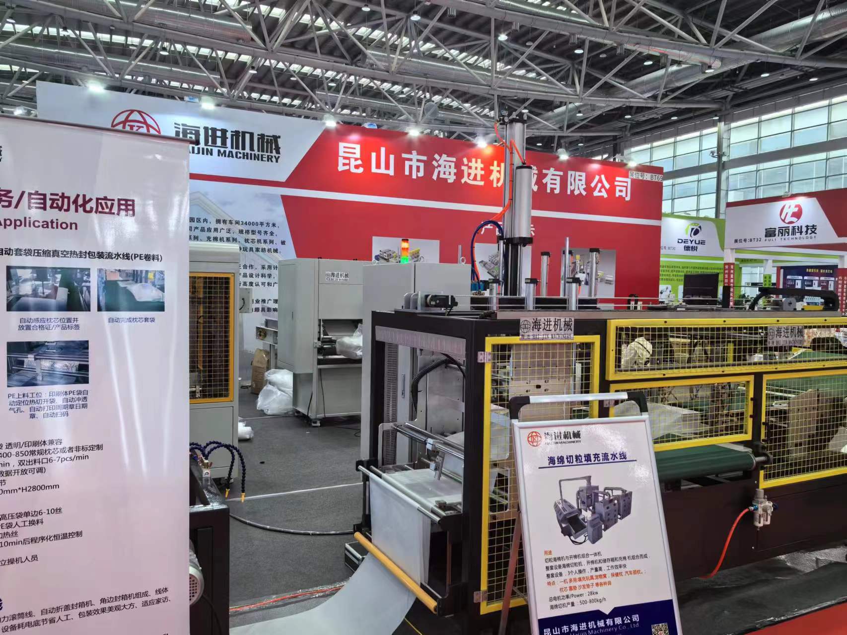 本次展會我公司參展的產品有枕芯自動拍打裝袋真空壓縮機,枕芯自動打卷裝袋機,自動紙箱打包機等三款自動化設備,引起廣大新老客戶好評!